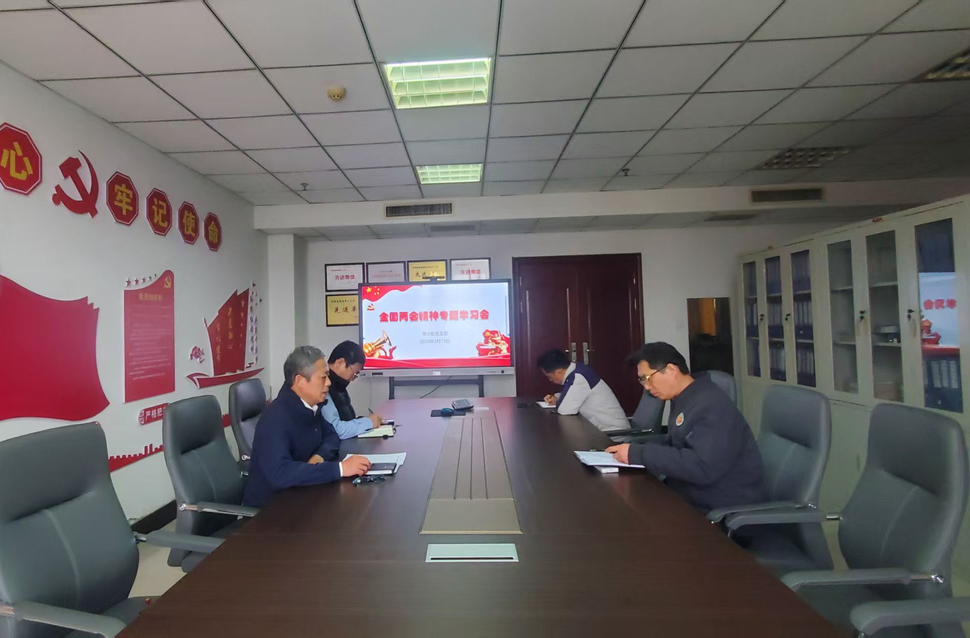 3月19日,审计处党支部在办公楼702会议室举行全国两会精神专题学习会。会议由党支部书记巴新华主持。