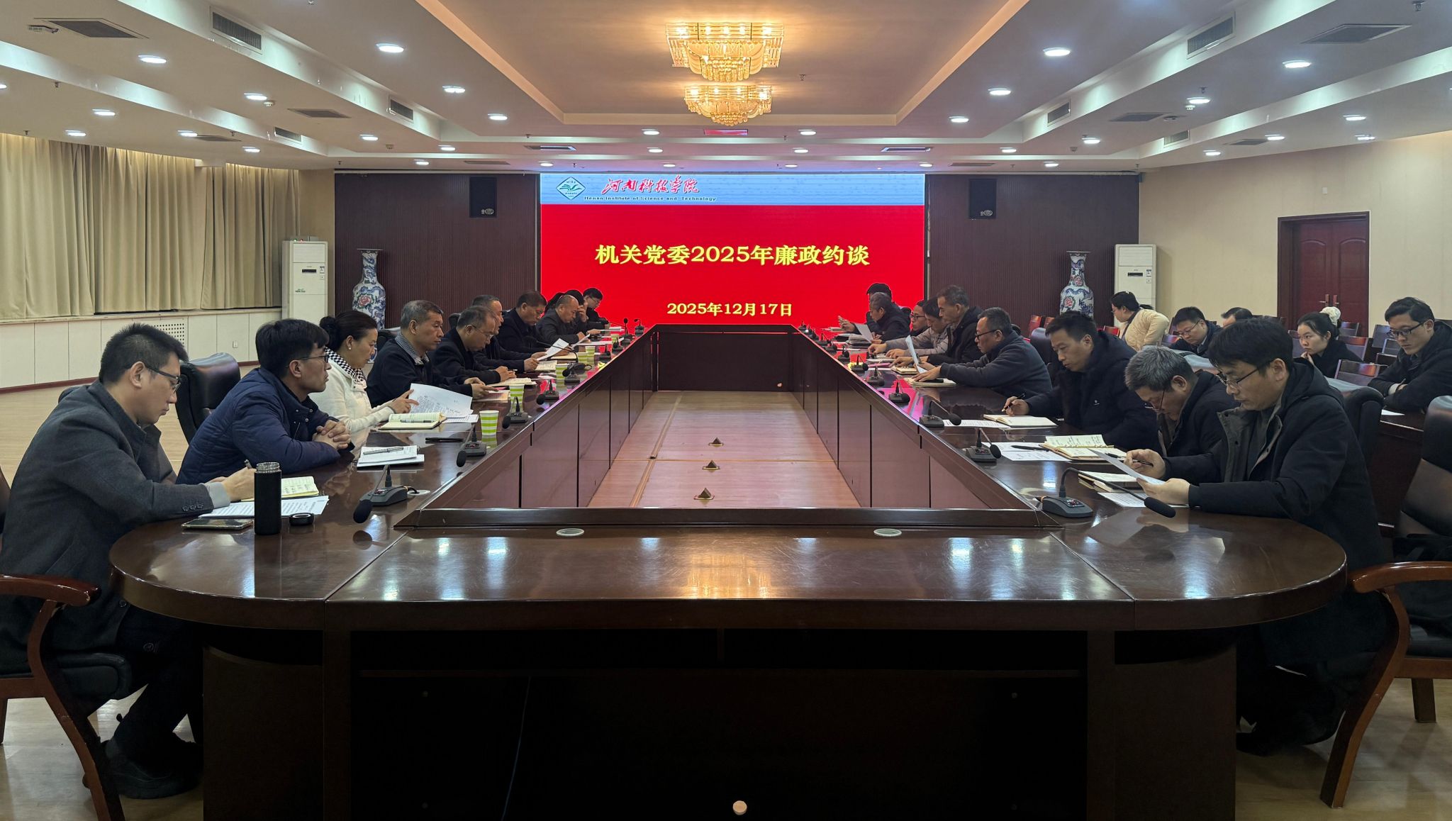 按照学校《关于开展2025年廉政约谈工作的通知》要求,12月17日下午,机关党委在办公楼206会议室开展集体廉政约谈,机关党委委员和各党支部书记参加,约谈会由党委书记冀红举主持。